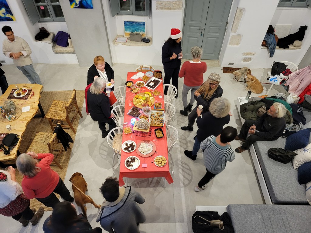 Gathered in the center of Parikia under the full moon, our first concert venue in Μαντω Μαυρογενους square hosted kiosks filled