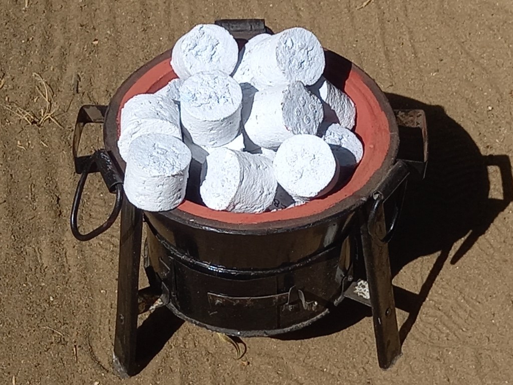 Try making charcoal using coconut or maize husks, sawdust, or other natural materials.